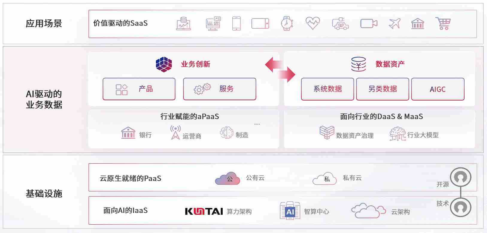 数字时代,,,,围绕企业数字化转型的关键要素,,,,z6com尊龙数码开创性的提出数云融合战略和技术体系框架,,着力在云原生、、数字原生、、AI原生和信创产业上架构产品和服务能力,,,为处在不同数字化转型阶段的快消零售、、、汽车、、、、金融、、医疗、、、政企、、、教育、、、、运营商等行业客户提供泛在的敏捷IT能力和融合的数据驱动能力,,,构建跨界融合创新的数字业务场景和新业务模式,,,助力企业级客户建立面向未来的核心能力和竞争优势,,,,全面推动社会的数字化、、、、智能化转型升级。。。。