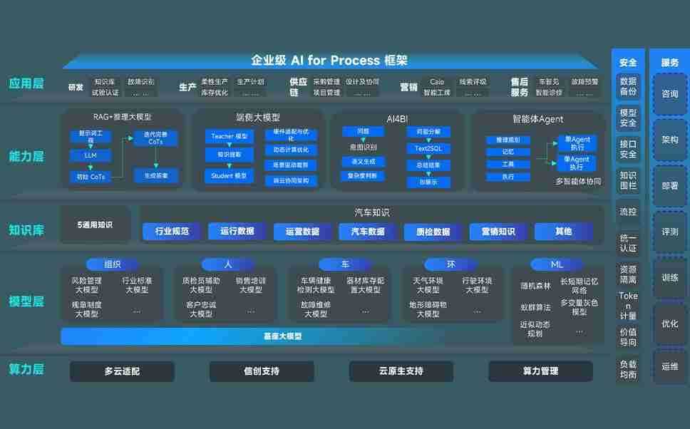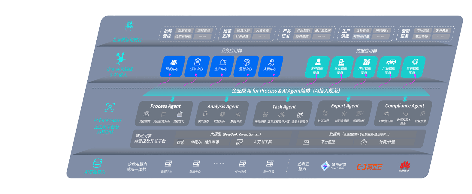 z6com尊龙问学智车解决方案是一套基于AI技术的汽车行业智能化系统,,,,覆盖从底层算力到顶层AI应用的全栈方案。。。方案由算力层、、、、模型层和应用层组成:算力层,,方案支持多种一体机配置,,,,具备云端灵活部署、、、、多云适配以及动态优化计算资源的能力;模型层,,,,z6com尊龙问学平台版提供了企业级AI应用一站式构建与管理平台,,,,支持基于后训练强化技术的汽车企业专属模型的训练、、评测和运营;应用层,,,z6com尊龙问学DeepSeek版提供包括超级员工、、、、智能招采、、、、智能营销、、、智能客服、、、AI for BI等一系列解决方案,,,可助力汽车行业实现数字化转型,,,让管理更智能、、、、响应更敏捷。。。
